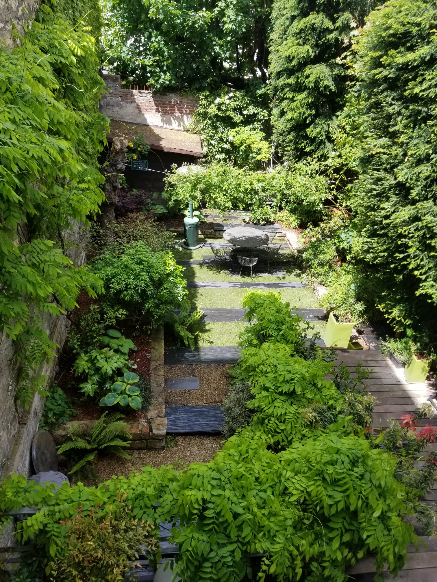 Niché au cœur de Paris, découvrez un jardin extraordinaire qui évoque la sérénité des paysages japonais. Imaginez un sol en quinconce, où l'herbe verte se mêle harmonieusement aux dalles d'ardoise, créant un tableau vivant et élégant. Les plantes, soigneusement choisies pour leur adaptabilité à l'ombre, ajoutent une touche de mystère à ce havre de paix. Des érables du Japon aux orangers du Mexique, en passant par une variété impressionnante d'hostas et de pierris japonica, chaque plante raconte une histoire.