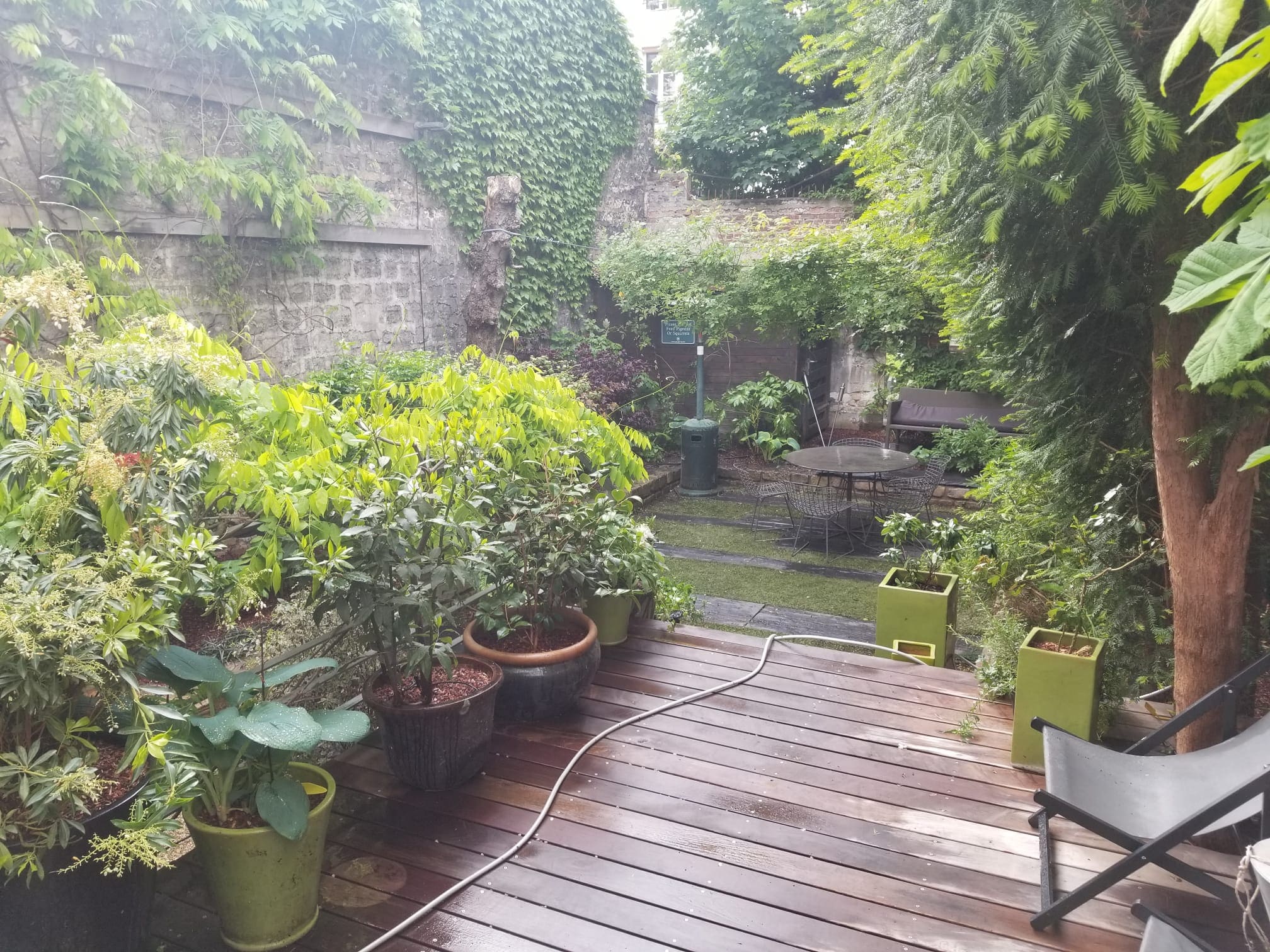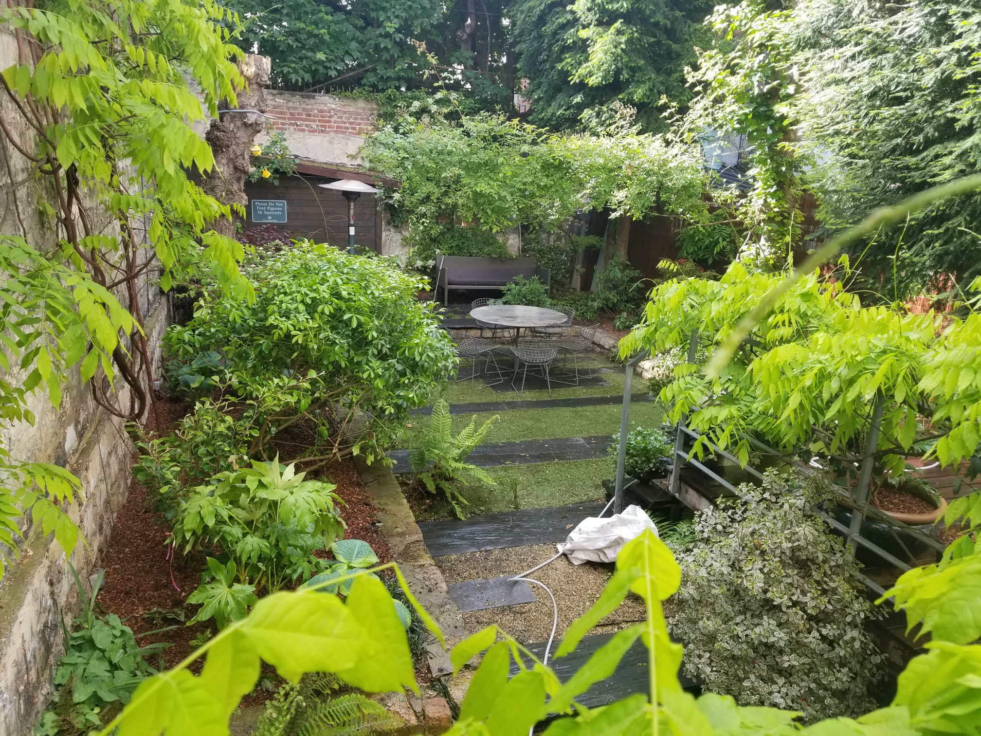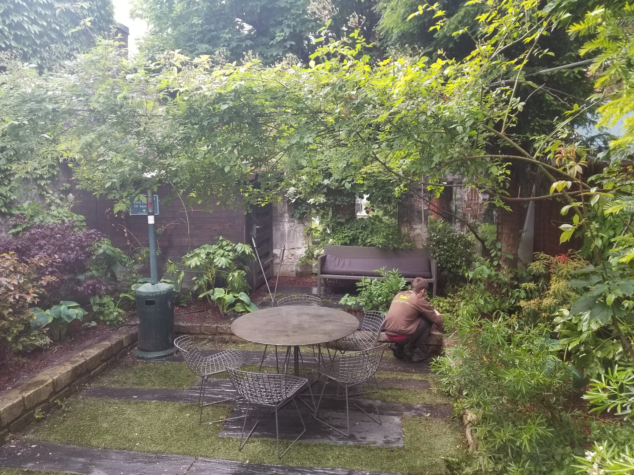 Pour réaliser ce jardin, tous les éléments ont été acheminés manuellement, car il était obligatoire de passer par l'appartement principal. Aucun accès facile n'était disponible, donc aucune machine n'a été utilisée dans le processus.